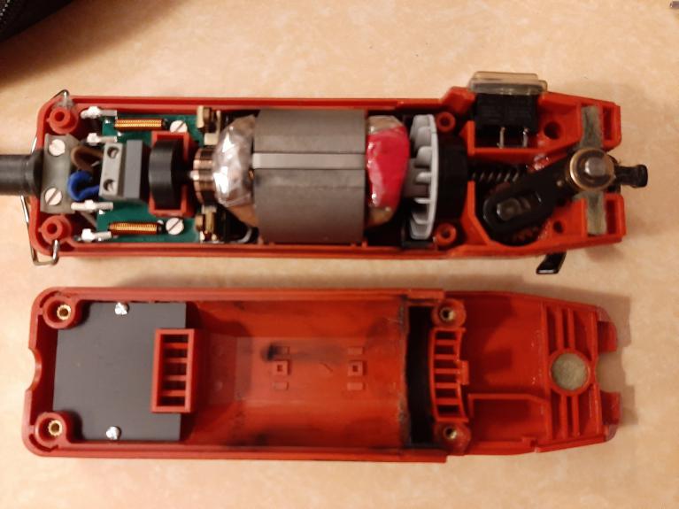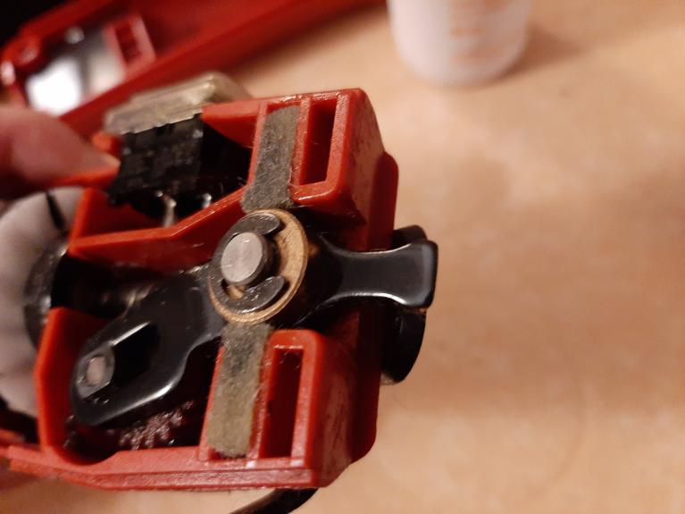 Voici une tête de coupe. C'est la partie que l'on rajoute sur la tondeuse (un peu comme les sabots). Celle-ci est un peu cracra. Il s'agit pour moi de la démonter, en prenant soin de ne perdre aucune pièce.