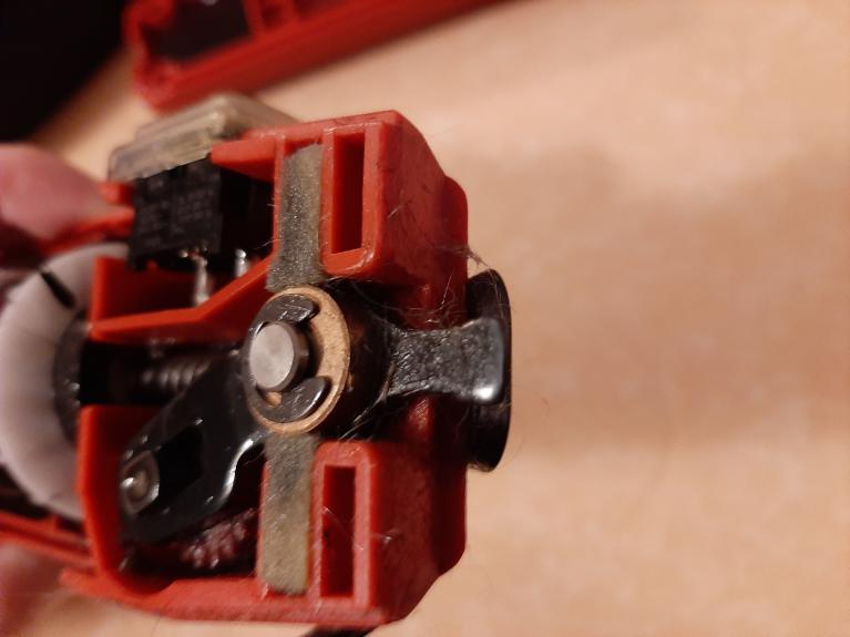 On constate que les poils se sont infiltrés entre le peigne principal et le contre-peigne. Cette intrusion de poils peut avoir des conséquences et il est bien de les retirer de temps en temps. Cette action prolonge aussi la durée de vie de la tête de coupe.